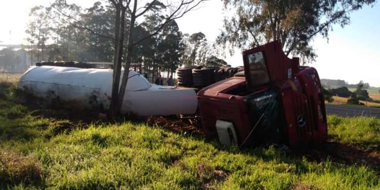 O veículo, que saiu da Cidade de Passo Fundo e estava se deslocando a Cruz Alta, carregava cimento em pó a granel, quando ao chegar na curva por motivos desconhecidos acabou tombando.