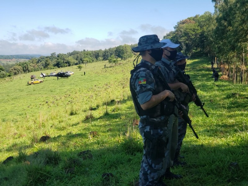 Participaram da ação 60 policiais militares e civis, 25 viaturas, variadas especialidades e forças de segurança do Estado e de Santa Catarina.