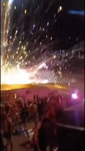 O impacto danificou uma árvore próxima ao local da apresentação e chegou a quebrar os vidros de um veículo que estava estacionado nas proximidades.