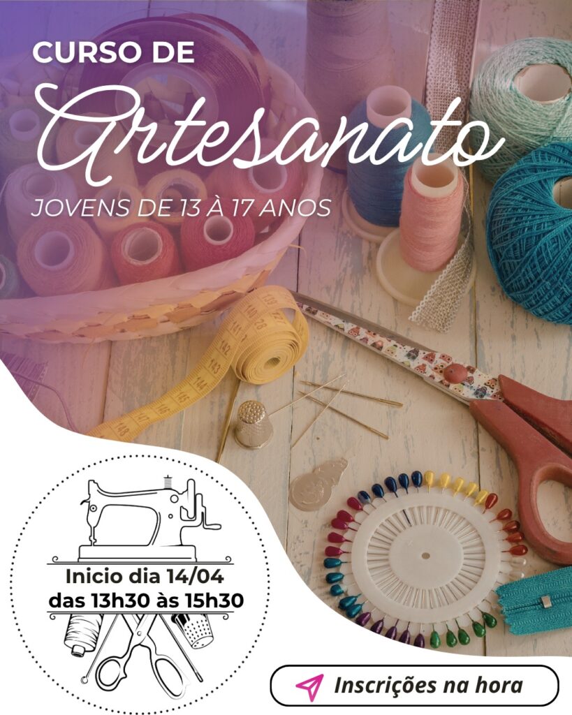 A Secretaria de Assistência Social convida os jovens de 13 a 17 anos para participarem de um Curso de Artesanato!