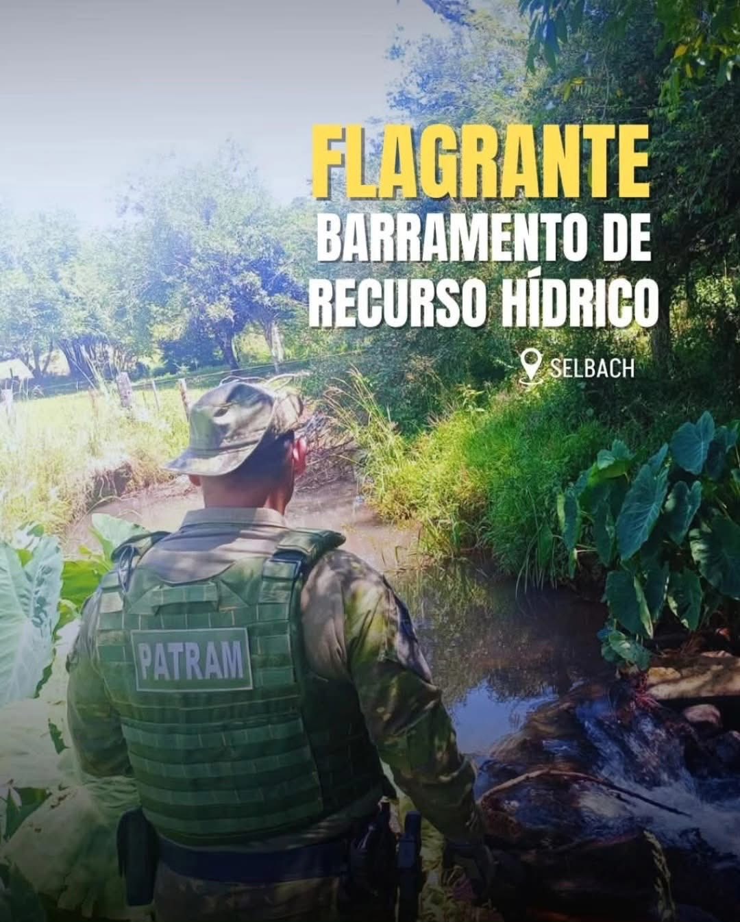 Neste domingo (07/12), a Brigada Militar, através do 3° Batalhão Ambiental (BABM), flagrou o barramento de curso d’água, no interior do município de Selbach.