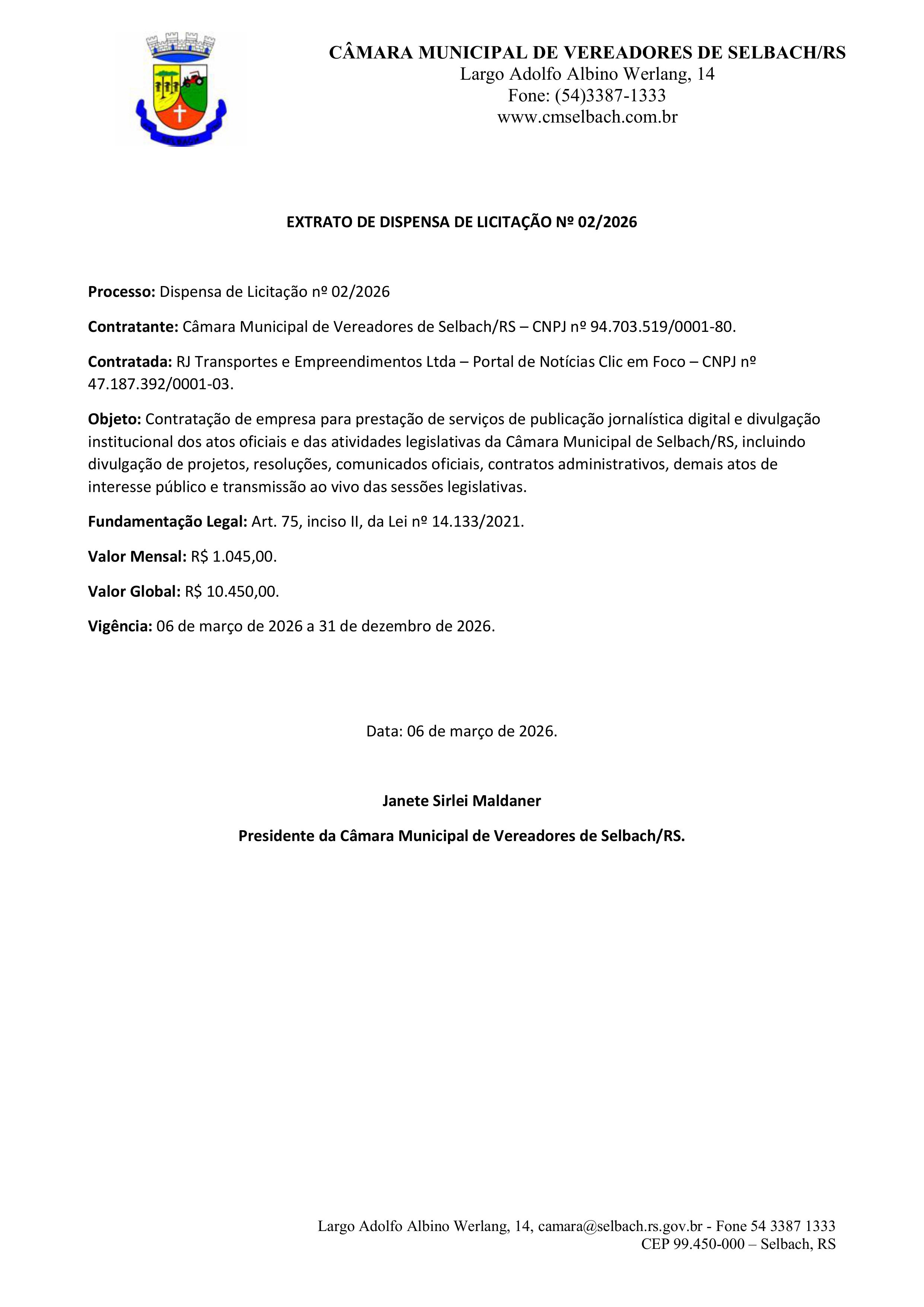 - https://clicemfoco.com.br/noticia/c-acirc-mara-de-vereadores-de-selbach-extrato-processo-dispensa-dispensa-de-licita-ccedil-atilde-o-n-ordm-02-2026