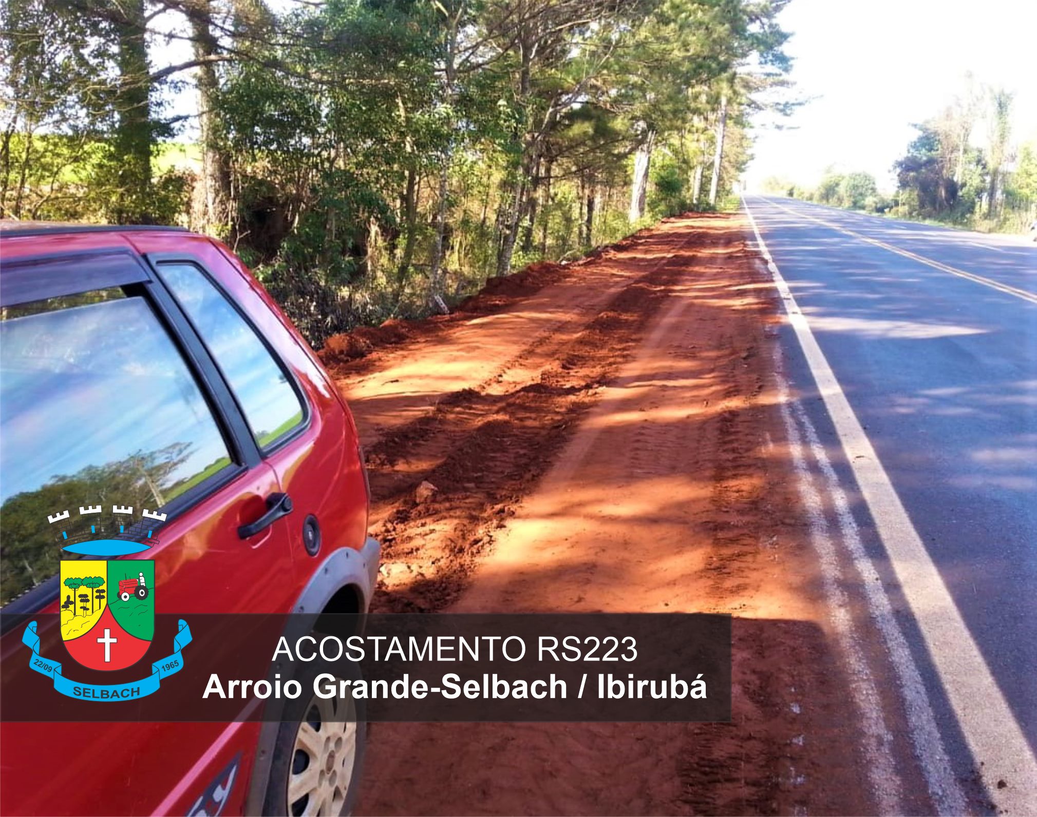 A Prefeitura Municipal de Selbach, através do Prefeito Sergio Ademir Kuhn, buscou junto ao Departamento Autônomo de Estradas de Rodagem – DAER, uma parceria para execução de ACOSTAMENTO entre Arroio Grande/Selbach e Ibirubá.