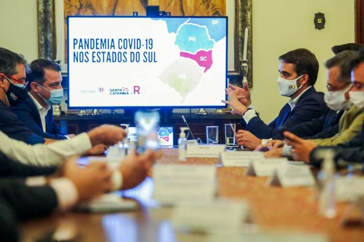 “Trocarmos as melhores experiências nos três Estados do Sul, que, além de um perfil socioeconômico semelhante, observamos que o perfil da pandemia tem sido semelhante. Principalmente de 10 de fevereiro para cá, temos tido uma forte inclinação na demanda de internações, com agravamento de casos em função especialmente da variante P1, que demandou muito fortemente o nosso sistema hospitalar. O RS já observa estabilidade da demanda, mas em um patamar muito alto, e percebemos que outros Estados também estão vivenciando isso, por isso estamos nos articulando para colaboração entre nós (três Estados) e nos prepararmos para dar colaboração possível ali na frente aos demais Estados em função da superdemanda que começa a chegar”, destacou Leite em coletiva de imprensa após a reunião.
