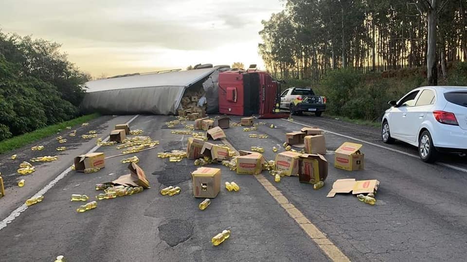 Conforme a Polícia Rodoviária Federal (PRF), o trânsito completamente bloqueado no local, para o atendimento à ocorrência. O caminhão ainda espalhou uma carga de óleo de cozinha sobre a pista.