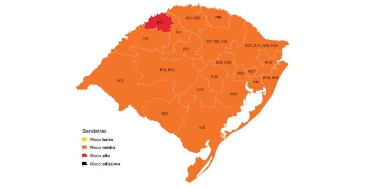 O Governo do Estado divulgou na tarde de hoje (30) o mapa preliminar do Distanciamento Controlado. Com aumento de casos de coronavírus nesta semana, Passo Fundo e região seguem na bandeira laranja.