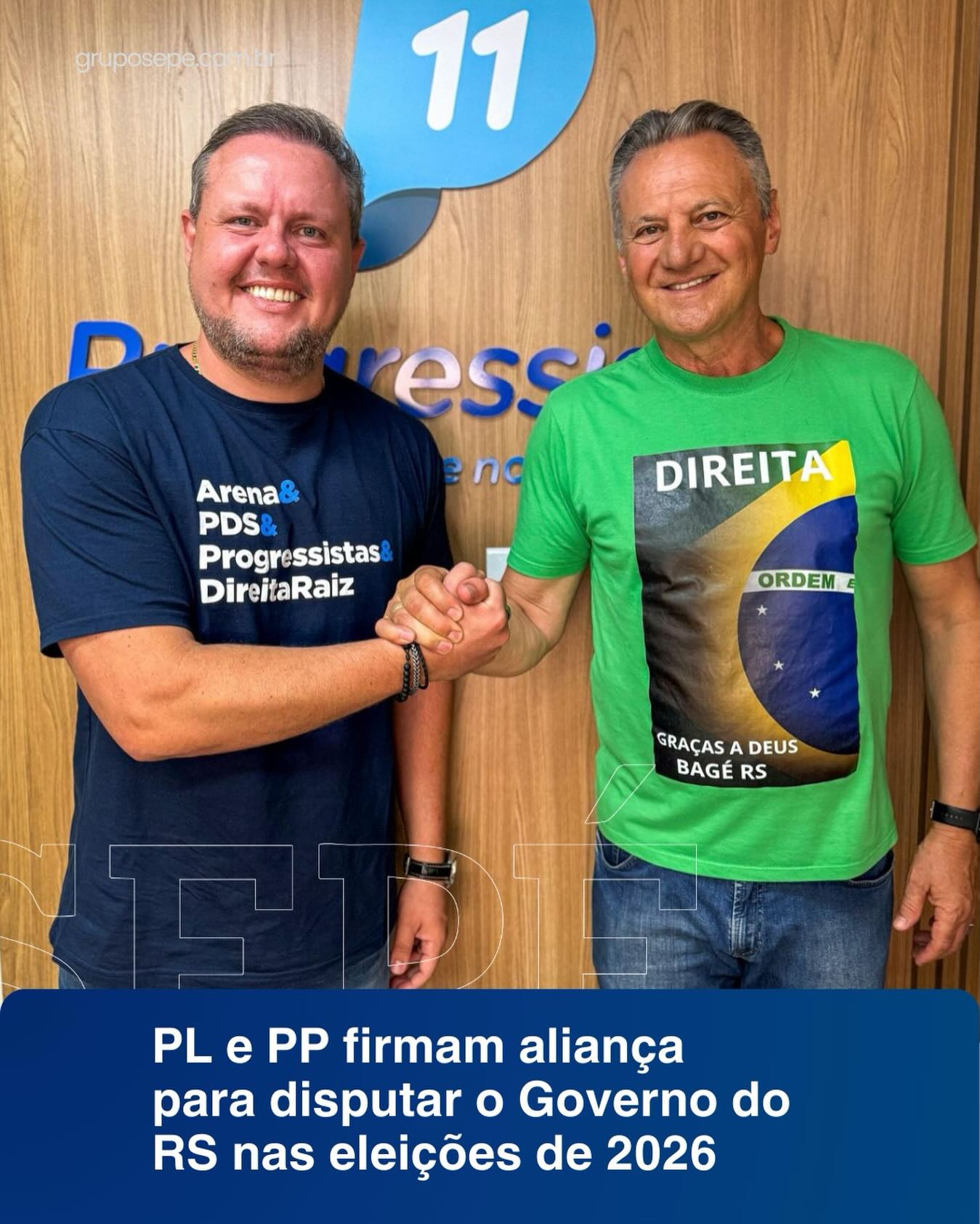 ]O Partido Liberal (PL) e o Partido Progressistas (PP) anunciaram, nesta quarta-feira (21), um acordo político para disputar conjuntamente o Governo do Rio Grande do Sul nas eleições de 2026. A aliança foi confirmada publicamente pelo presidente estadual do PL/RS, deputado federal Giovani Cherini, e pelo presidente do PP/RS, deputado federal Covatti Filho.