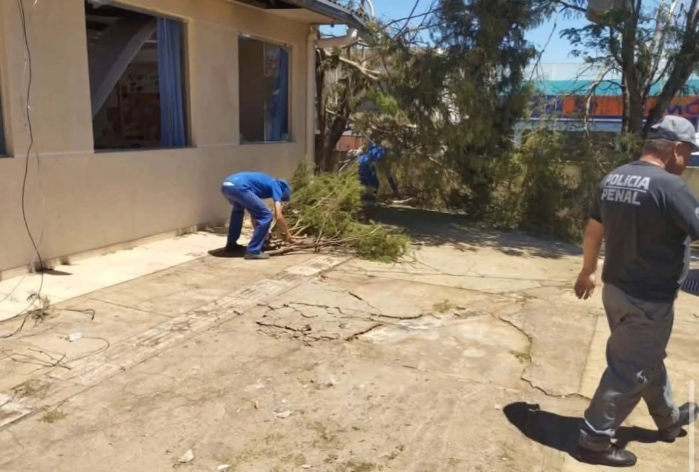 "Vamos chegar a 30 detentos do Mãos Amigas para ajudar na limpeza dos entulhos. Queremos ser rápidos nisso para que em breve as crianças e adolescentes voltem para a escola", afirmou Ratinho Junior.