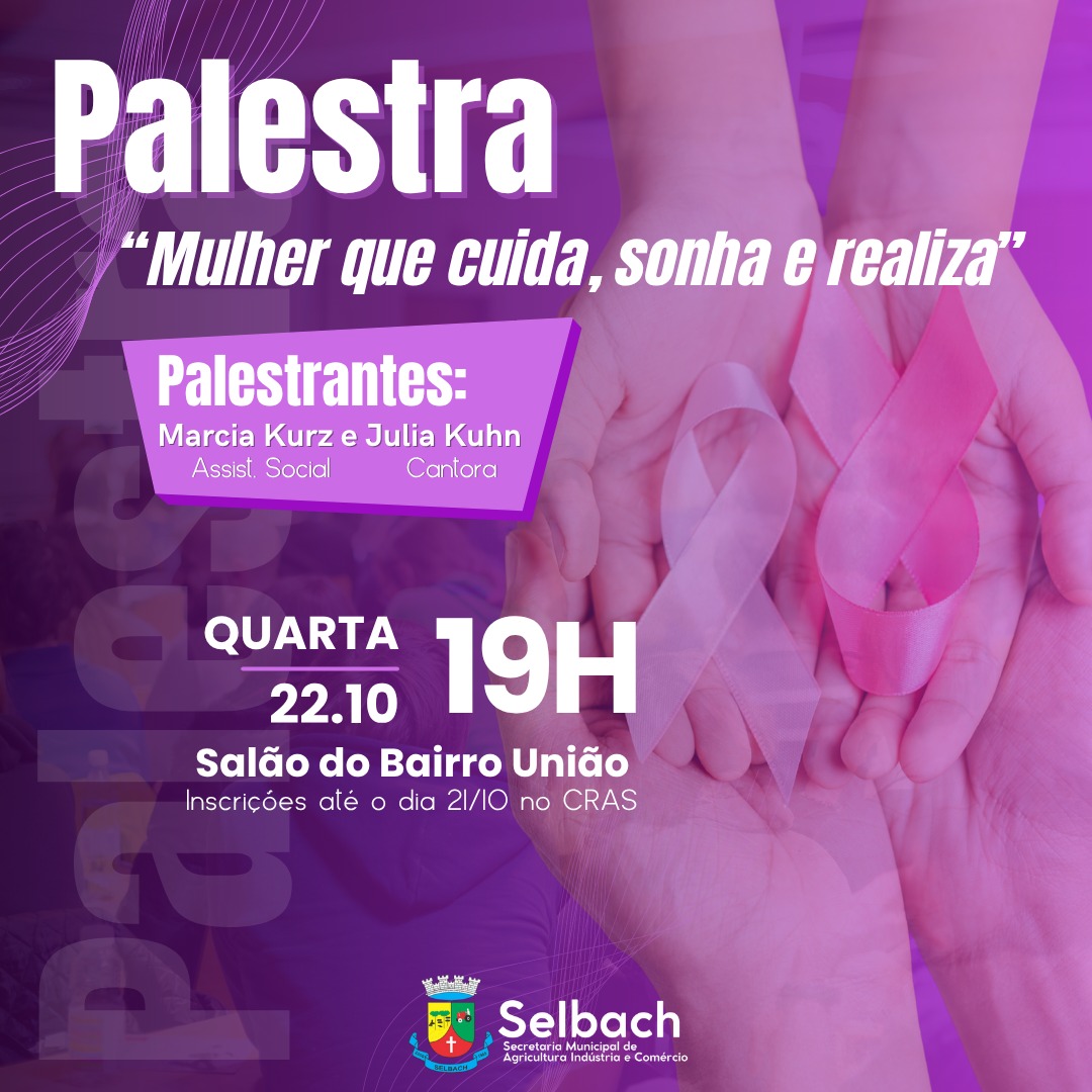 A Secretaria de Assistência Social e Habitação convida todas as mulheres para a Palestra “Mulher que cuida, sonha e realiza”, com: