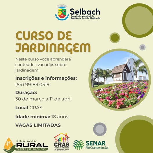 A Administração Municipal, por meio do CRAS, promove um Curso de Jardinagem gratuito para a comunidade.