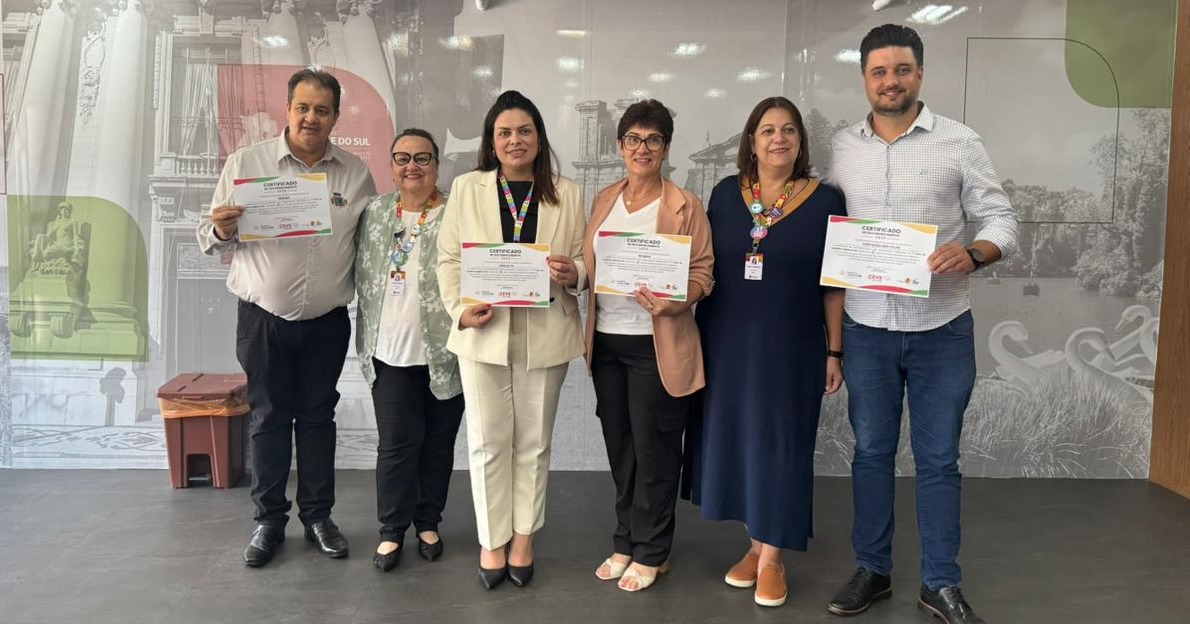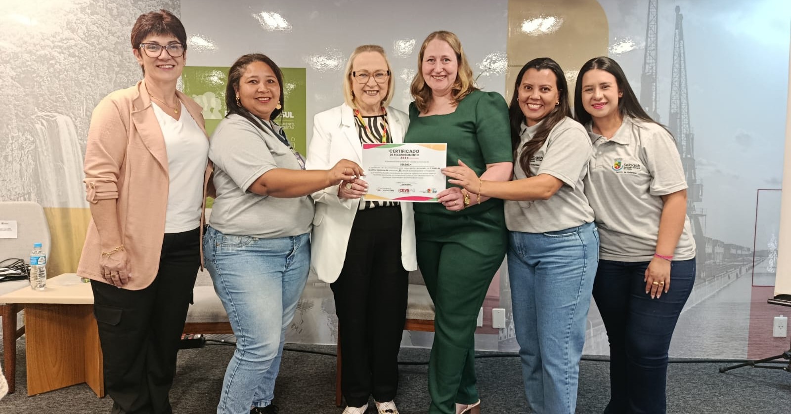 Pela 9ª CRS, foram certificados os municípios de Cruz Alta, Fortaleza dos Valos, Ibirubá e Selbach — que esteve representado pela Secretária Neida, pela Técnica de Enfermagem Marlise e pelas Agentes de Endemias Gabriela, Michele e Letícia. A Coordenadora da 9ª CRS, Jussara Daltrozz Gutierrez, e a Coordenadora Adjunta, Débora Teichmann Rodrigues, também participaram do evento.
