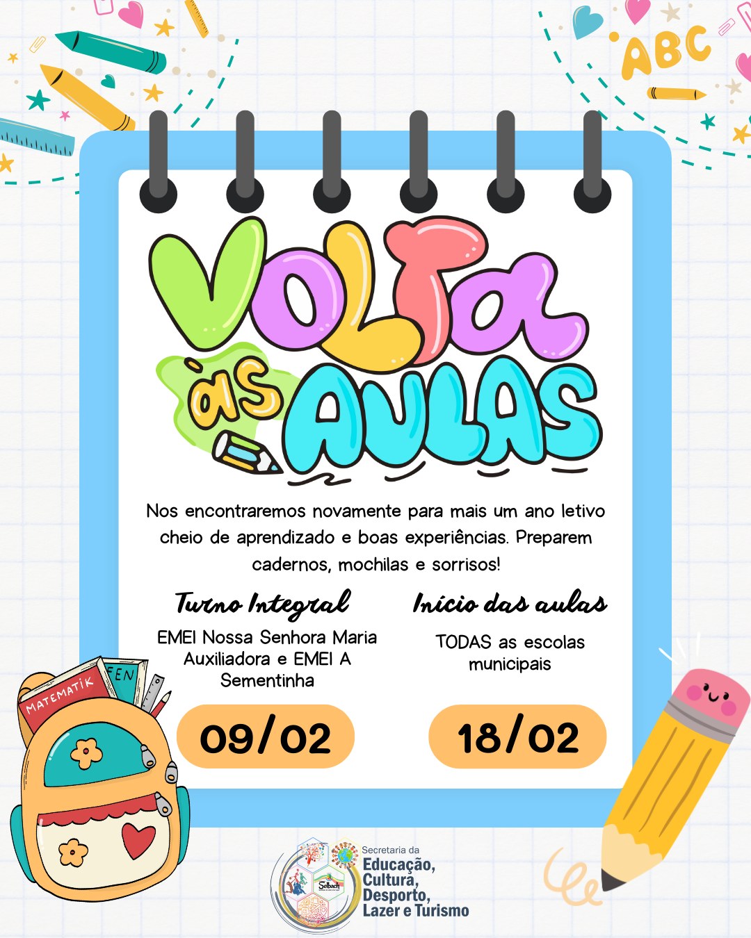 Desejamos um excelente ano letivo para alunos, famílias e profissionais da educação!