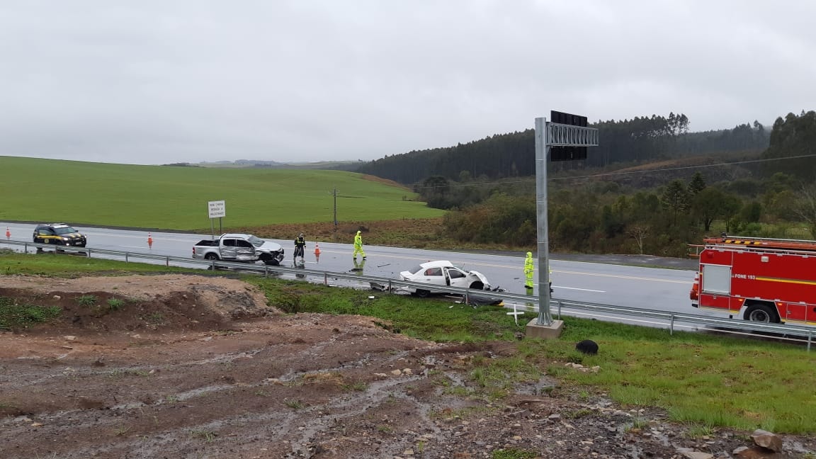 A colisão frontal envolvendo uma S10 de Soledade e um Voyage de Espumoso aconteceu por volta das 9h30min no km 261 da rodovia.